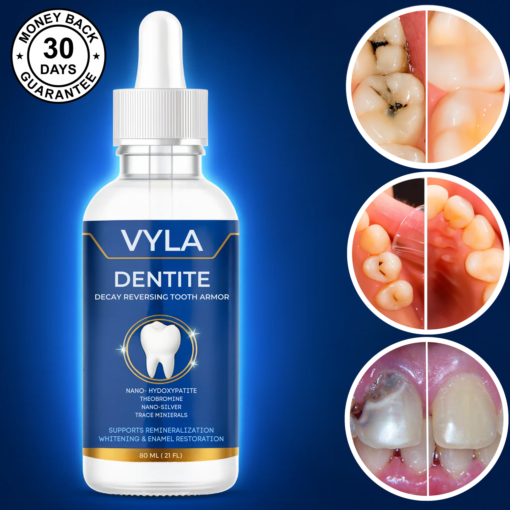VYLA Dentite Tooth Armor is an advanced remineralizing toothpaste that uses nano-hydroxyapatite—the same mineral your teeth are naturally made of—to rebuild weakened enamel, stop sensitivity pain, and prevent expensive dental procedures.