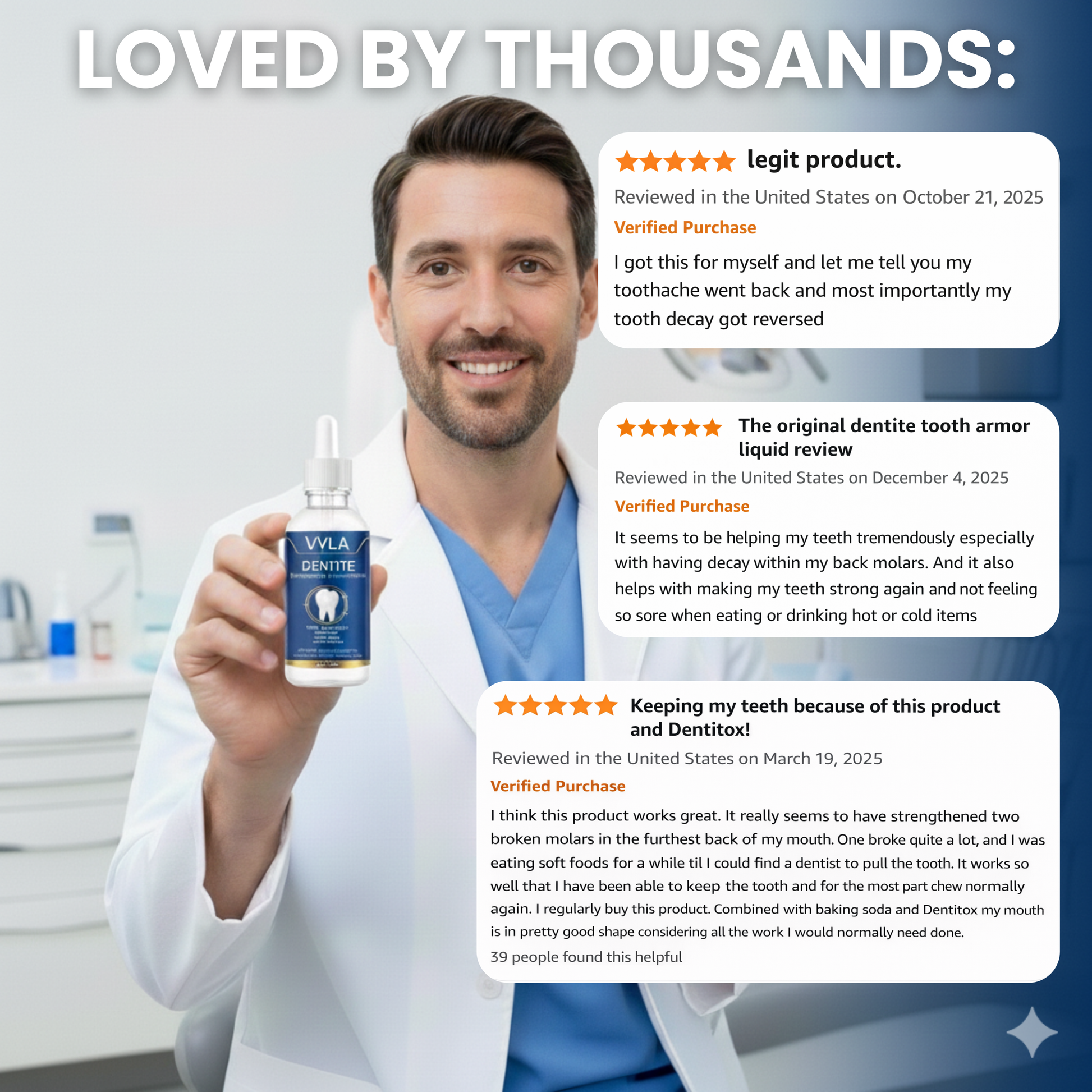 But more importantly, we back every bottle with a 30-day money-back guarantee. If Dentite doesn't strengthen your teeth or stop your sensitivity, we refund every penny. We're shouldering all the risk. You either get results or get your money back—there's nothing to lose.